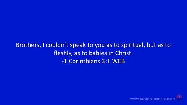 Brothers, I couldn’t speak to you as to spiritual, but as to fleshly, as to babies in Christ. -1 Corinthians 3:1 WEB