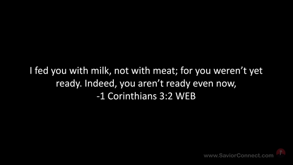 I fed you with milk, not with meat; for you weren’t yet ready. Indeed, you aren’t ready even now, -1 Corinthians 3:2 WEB
