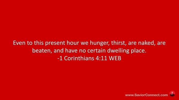Even to this present hour we hunger, thirst, are naked, are beaten, and have no certain dwelling place. -1 Corinthians 4:11 WEB