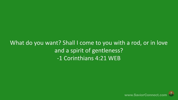What do you want? Shall I come to you with a rod, or in love and a spirit of gentleness? -1 Corinthians 4:21 WEB