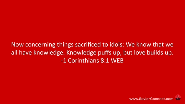 Now concerning things sacrificed to idols: We know that we all have knowledge. Knowledge puffs up, but love builds up. -1 Corinthians 8:1 WEB