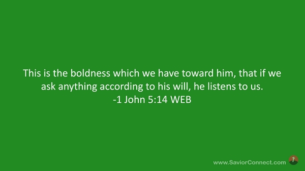 This is the boldness which we have toward him, that if we ask anything according to his will, he listens to us. -1 John 5:14 WEB