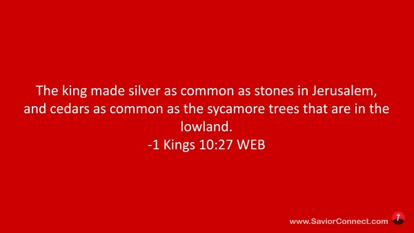 The king made silver as common as stones in Jerusalem, and cedars as common as the sycamore trees that are in the lowland. -1 Kings 10:27 WEB