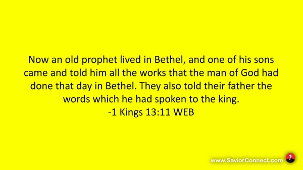 Now an old prophet lived in Bethel, and one of his sons came and told him all the works that the man of God had done that day in Bethel. They also told their father the words which he had spoken to the king. -1 Kings 13:11 WEB