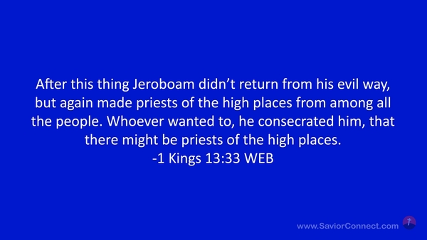 After this thing Jeroboam didn’t return from his evil way, but again made priests of the high places from among all the people. Whoever wanted to, he consecrated him, that there might be priests of the high places. -1 Kings 13:33 WEB