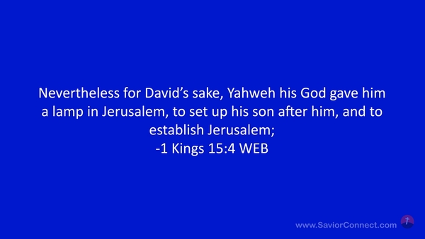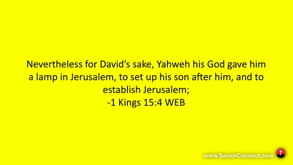 Nevertheless for David’s sake, Yahweh his God gave him a lamp in Jerusalem, to set up his son after him, and to establish Jerusalem; -1 Kings 15:4 WEB