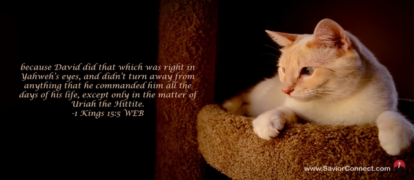 because David did that which was right in Yahweh’s eyes, and didn’t turn away from anything that he commanded him all the days of his life, except only in the matter of Uriah the Hittite. -1 Kings 15:5 WEB