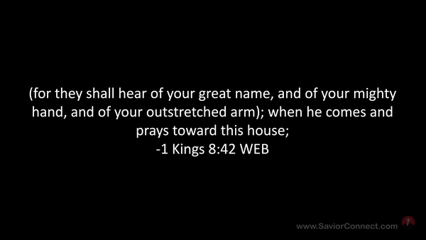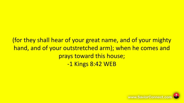 (for they shall hear of your great name, and of your mighty hand, and of your outstretched arm); when he comes and prays toward this house; -1 Kings 8:42 WEB
