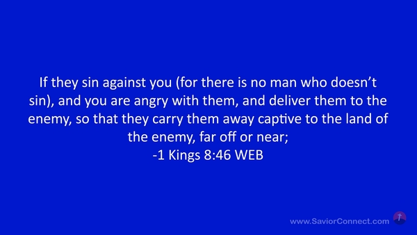 If they sin against you (for there is no man who doesn’t sin), and you are angry with them, and deliver them to the enemy, so that they carry them away captive to the land of the enemy, far off or near; -1 Kings 8:46 WEB