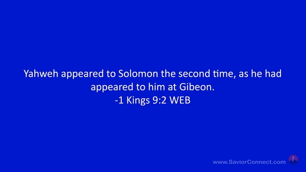 Yahweh appeared to Solomon the second time, as he had appeared to him at Gibeon. -1 Kings 9:2 WEB