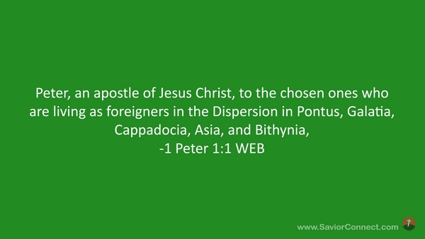Peter, an apostle of Jesus Christ, to the chosen ones who are living as foreigners in the Dispersion in Pontus, Galatia, Cappadocia, Asia, and Bithynia, -1 Peter 1:1 WEB