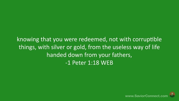 knowing that you were redeemed, not with corruptible things, with silver or gold, from the useless way of life handed down from your fathers, -1 Peter 1:18 WEB