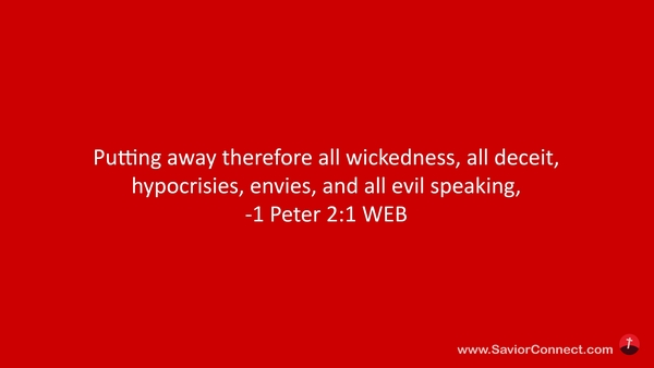 Putting away therefore all wickedness, all deceit, hypocrisies, envies, and all evil speaking, -1 Peter 2:1 WEB