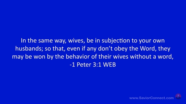 In the same way, wives, be in subjection to your own husbands; so that, even if any don’t obey the Word, they may be won by the behavior of their wives without a word, -1 Peter 3:1 WEB