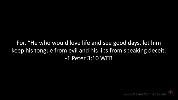For, “He who would love life and see good days, let him keep his tongue from evil and his lips from speaking deceit. -1 Peter 3:10 WEB