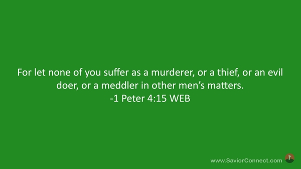 For let none of you suffer as a murderer, or a thief, or an evil doer, or a meddler in other men’s matters. -1 Peter 4:15 WEB