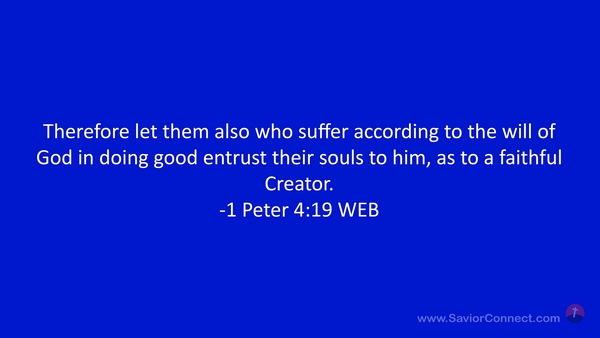 Therefore let them also who suffer according to the will of God in doing good entrust their souls to him, as to a faithful Creator. -1 Peter 4:19 WEB