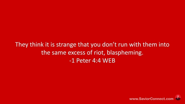 They think it is strange that you don’t run with them into the same excess of riot, blaspheming. -1 Peter 4:4 WEB