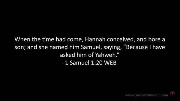 When the time had come, Hannah conceived, and bore a son; and she named him Samuel, saying, “Because I have asked him of Yahweh.” -1 Samuel 1:20 WEB