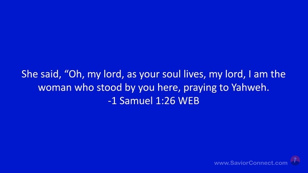 She said, “Oh, my lord, as your soul lives, my lord, I am the woman who stood by you here, praying to Yahweh. -1 Samuel 1:26 WEB
