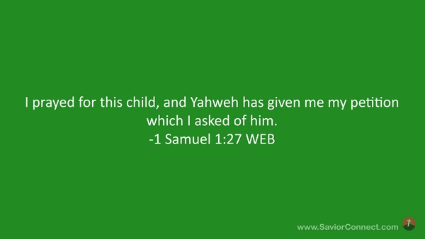 I prayed for this child, and Yahweh has given me my petition which I asked of him. -1 Samuel 1:27 WEB