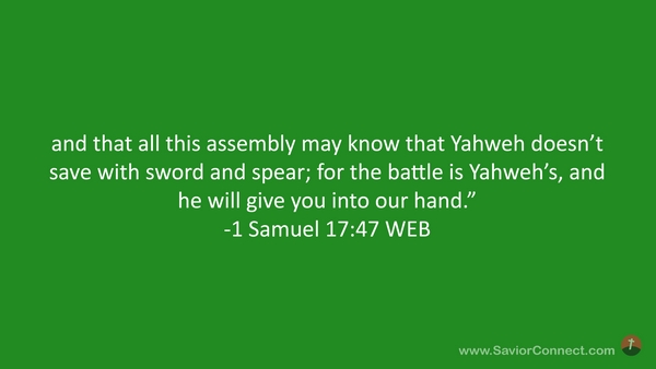 and that all this assembly may know that Yahweh doesn’t save with sword and spear; for the battle is Yahweh’s, and he will give you into our hand.” -1 Samuel 17:47 WEB