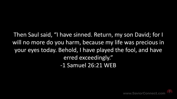 Then Saul said, “I have sinned. Return, my son David; for I will no more do you harm, because my life was precious in your eyes today. Behold, I have played the fool, and have erred exceedingly.” -1 Samuel 26:21 WEB