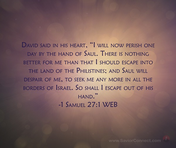 David said in his heart, “I will now perish one day by the hand of Saul. There is nothing better for me than that I should escape into the land of the Philistines; and Saul will despair of me, to seek me any more in all the borders of Israel. So shall I escape out of his hand.” -1 Samuel 27:1 WEB