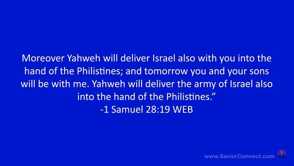 Moreover Yahweh will deliver Israel also with you into the hand of the Philistines; and tomorrow you and your sons will be with me. Yahweh will deliver the army of Israel also into the hand of the Philistines.” -1 Samuel 28:19 WEB