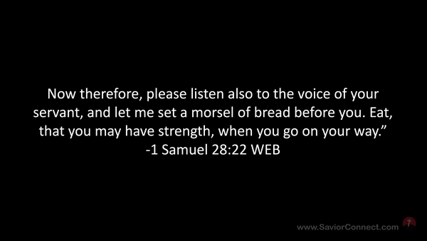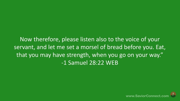 Now therefore, please listen also to the voice of your servant, and let me set a morsel of bread before you. Eat, that you may have strength, when you go on your way.” -1 Samuel 28:22 WEB