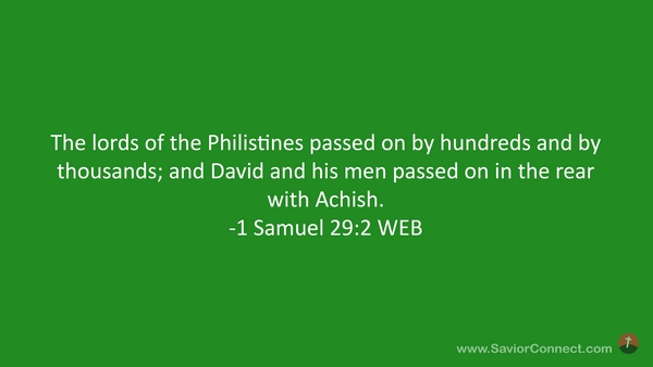The lords of the Philistines passed on by hundreds and by thousands; and David and his men passed on in the rear with Achish. -1 Samuel 29:2 WEB