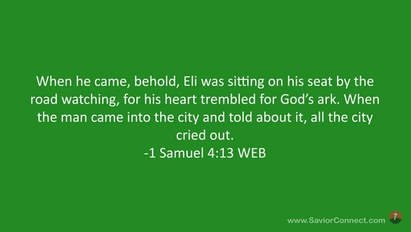 When he came, behold, Eli was sitting on his seat by the road watching, for his heart trembled for God’s ark. When the man came into the city and told about it, all the city cried out. -1 Samuel 4:13 WEB