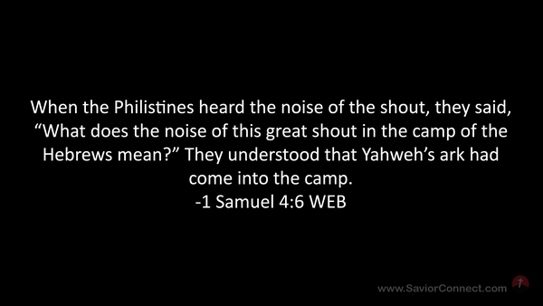 When the Philistines heard the noise of the shout, they said, “What does the noise of this great shout in the camp of the Hebrews mean?” They understood that Yahweh’s ark had come into the camp. -1 Samuel 4:6 WEB