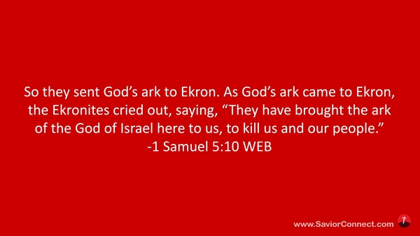 So they sent God’s ark to Ekron. As God’s ark came to Ekron, the Ekronites cried out, saying, “They have brought the ark of the God of Israel here to us, to kill us and our people.” -1 Samuel 5:10 WEB