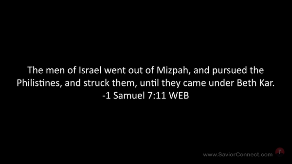 The men of Israel went out of Mizpah, and pursued the Philistines, and struck them, until they came under Beth Kar. -1 Samuel 7:11 WEB