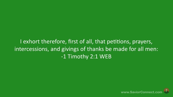 I exhort therefore, first of all, that petitions, prayers, intercessions, and givings of thanks be made for all men: -1 Timothy 2:1 WEB
