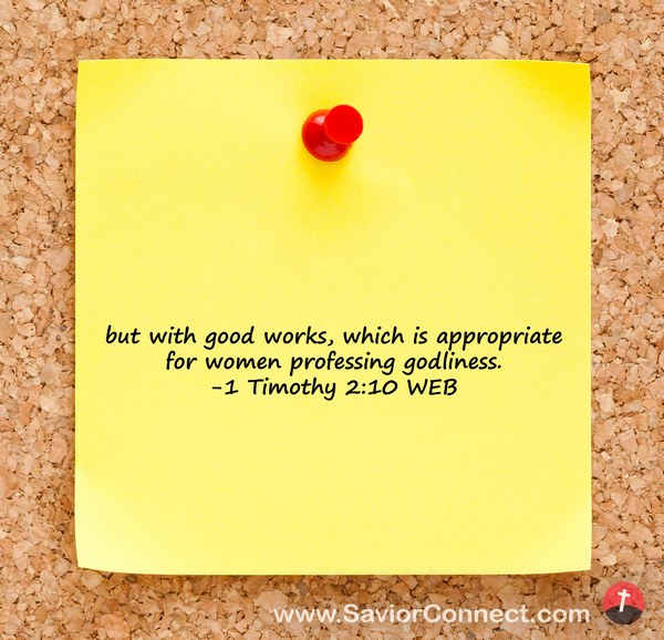 but with good works, which is appropriate for women professing godliness. -1 Timothy 2:10 WEB