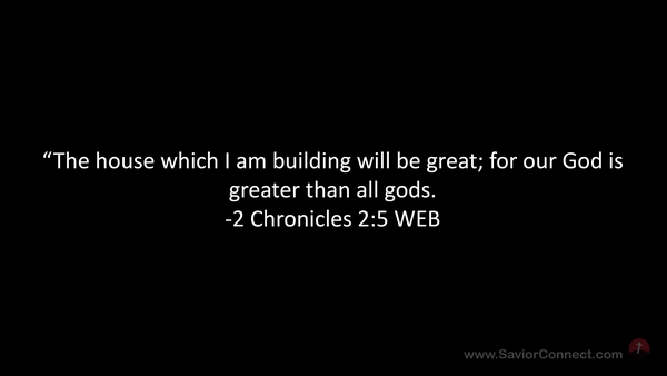 “The house which I am building will be great; for our God is greater than all gods. -2 Chronicles 2:5 WEB