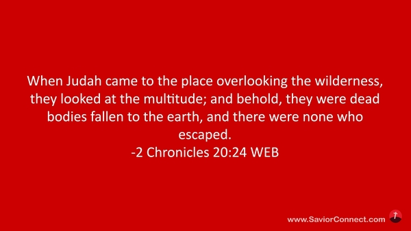 When Judah came to the place overlooking the wilderness, they looked at the multitude; and behold, they were dead bodies fallen to the earth, and there were none who escaped. -2 Chronicles 20:24 WEB