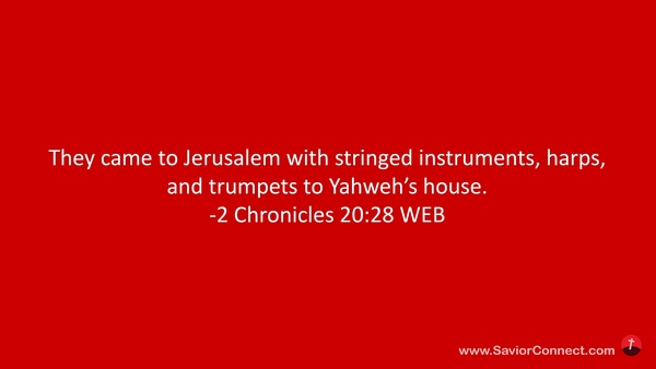 They came to Jerusalem with stringed instruments, harps, and trumpets to Yahweh’s house. -2 Chronicles 20:28 WEB