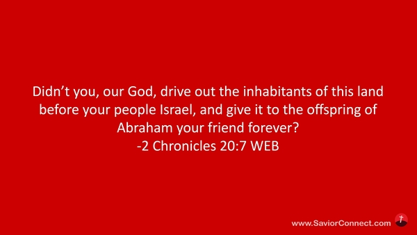 Didn’t you, our God, drive out the inhabitants of this land before your people Israel, and give it to the offspring of Abraham your friend forever? -2 Chronicles 20:7 WEB