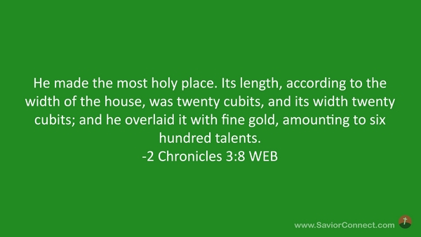 He made the most holy place. Its length, according to the width of the house, was twenty cubits, and its width twenty cubits; and he overlaid it with fine gold, amounting to six hundred talents. -2 Chronicles 3:8 WEB