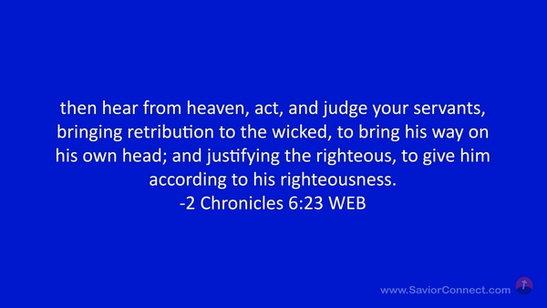 then hear from heaven, act, and judge your servants, bringing retribution to the wicked, to bring his way on his own head; and justifying the righteous, to give him according to his righteousness. -2 Chronicles 6:23 WEB