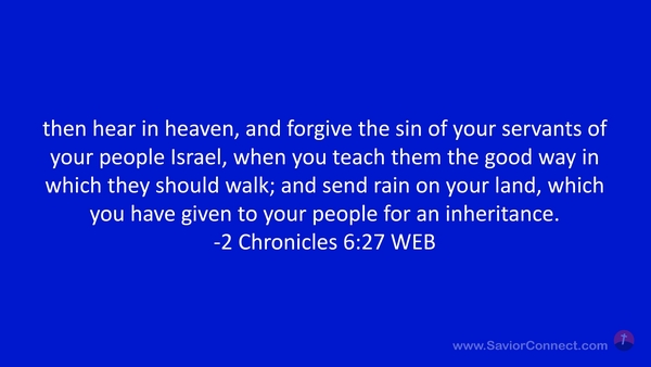 then hear in heaven, and forgive the sin of your servants of your people Israel, when you teach them the good way in which they should walk; and send rain on your land, which you have given to your people for an inheritance. -2 Chronicles 6:27 WEB