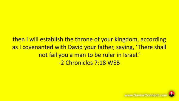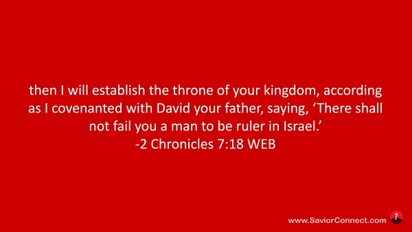 then I will establish the throne of your kingdom, according as I covenanted with David your father, saying, 'There shall not fail you a man to be ruler in Israel.’ -2 Chronicles 7:18 WEB