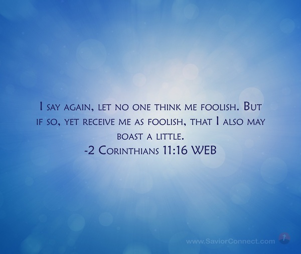 I say again, let no one think me foolish. But if so, yet receive me as foolish, that I also may boast a little. -2 Corinthians 11:16 WEB