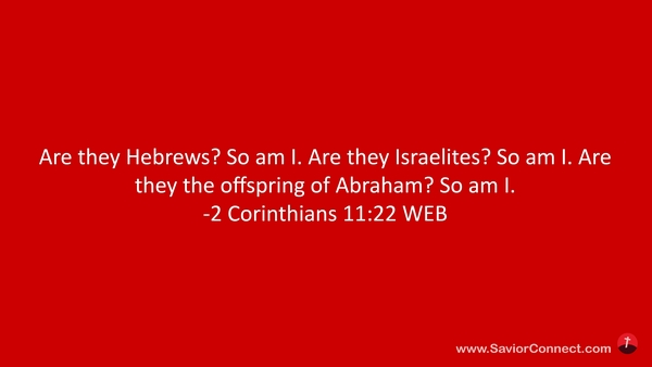 Are they Hebrews? So am I. Are they Israelites? So am I. Are they the offspring of Abraham? So am I. -2 Corinthians 11:22 WEB