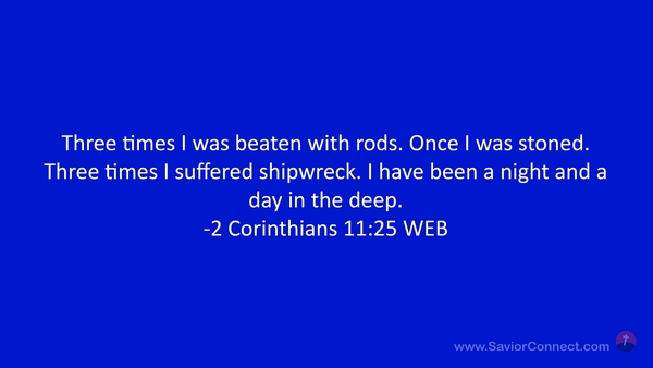 Three times I was beaten with rods. Once I was stoned. Three times I suffered shipwreck. I have been a night and a day in the deep. -2 Corinthians 11:25 WEB
