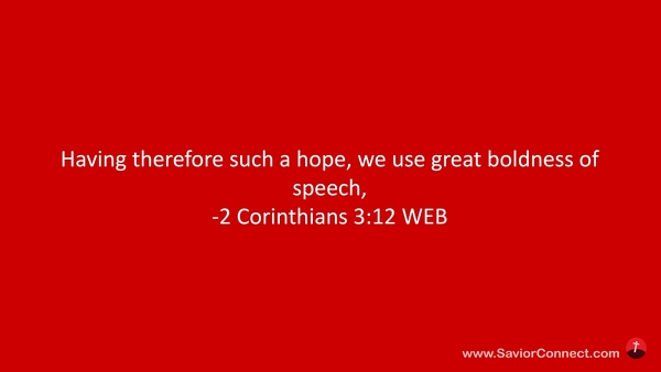 Having therefore such a hope, we use great boldness of speech, -2 Corinthians 3:12 WEB