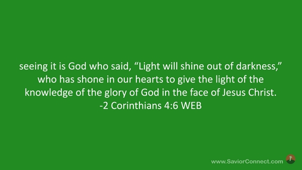 seeing it is God who said, “Light will shine out of darkness,” who has shone in our hearts to give the light of the knowledge of the glory of God in the face of Jesus Christ. -2 Corinthians 4:6 WEB